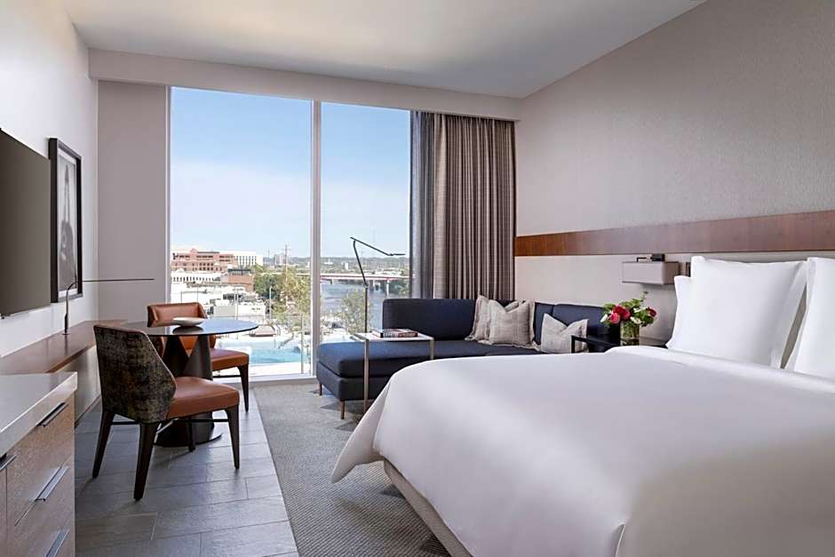 The suite has river views. The unit has 2 beds.