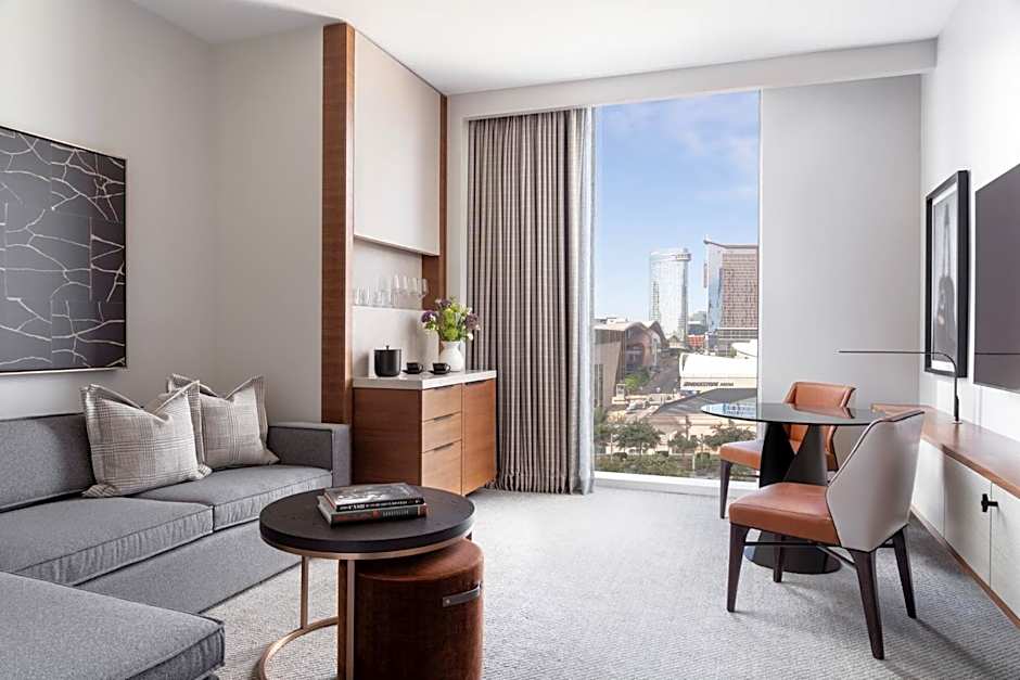 The suite features city views. The unit offers 1 bed.